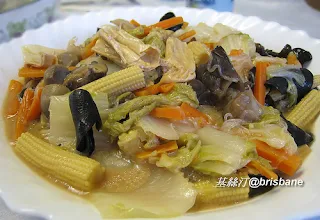 Para não cumprir a tradição à risca, é indispensável a presença do saboroso chouriço chinês (臘腸 lap chaeng) que o meu sogro compra numa lojinha ao pé do Mercado Vermelho e que é uma delícia.