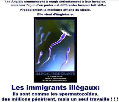 Ainda que mal comparado, não deixa de ter o seu fundo de verdade! Pobres emigrantes ilegais! Agora até são o alvo da chacota britânica, narrada em francês. Como dizem os brasileiros---Quando o urubu está de azar, até o debaixo faz pr'ó de cima---
